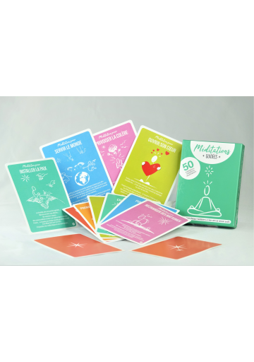 Les cartes Méditations Guidées proposent 50 commentaires de méditation, relaxation ou visualisation + les 50 audios de ces commentaires en musique.
