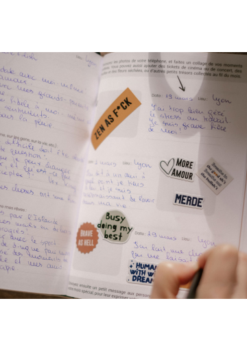 Le carnet est simple d'utilisation puisqu'il est guidé : il contient des questions, des exercices et des défis auxquels vous devez répondre chaque jour, mois ou année.