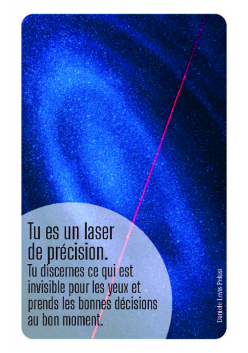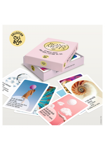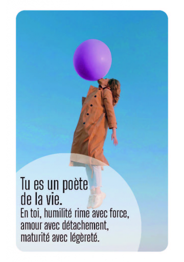 Les cartes Bons Mots vous emmènent faire un tour sur les chemins ensoleillés de votre personnalité. Là, une vision élevée révèle les qualités, les bénédictions, les louanges qui parent de la plus belle décoration : l’estime de soi. Ce sont vos titres, vos lettres de noblesse. En prendre conscience et les accepter les fait s’épanouir. Les offrir les fait se multiplier. Chaque jour, tirez ou offrez une carte et laissez-vous imprégner du message qu’elle adresse. N’hésitez pas à la photographier ou à la garder sur vous pour vous en inspirer tout au long de la journée. Elle agira comme un rempart face à l’adversité, la malveillance, les pensées parasites. Elle sera comme une bonne nouvelle venue d’en haut, au milieu de toutes les mauvaises dispensées par les médias.