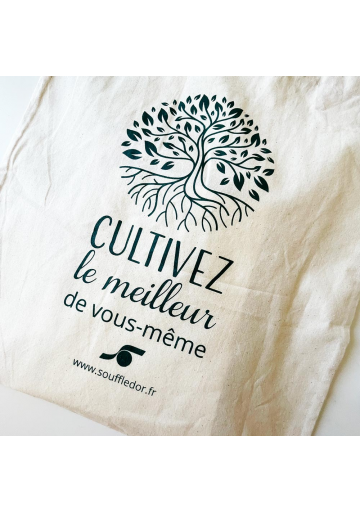 Pour porter les couleurs de nos éditions le Souffle d'Or et cultiver le meilleur de vous-même au quotidien, avec nos livres, jeux et musiques, offrez-vous ce nouveau tote bag 100% coton bio, 160 g/m2, dimensions 38 x 42 cm (L x H), coloris écru naturel.